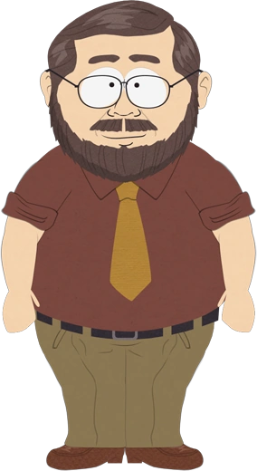 亚当斯先生是一位体格健壮的白人男性。他留着棕色的大胡子,戴着眼镜。他穿着橄榄色的休闲裤,一件卷起袖子的红衬衫,戴着一条黄橙色的领带,系着一条朴素的黑腰带。
