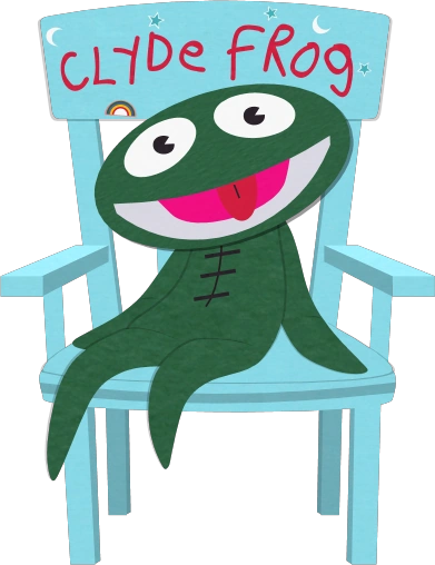 克莱德蛙是一个遍体绿色的毛绒玩具青蛙,它经常吐着红舌头。在早期(“卡特曼的荡妇妈”和“危险童爱会”),它的肤色要更浅一些。