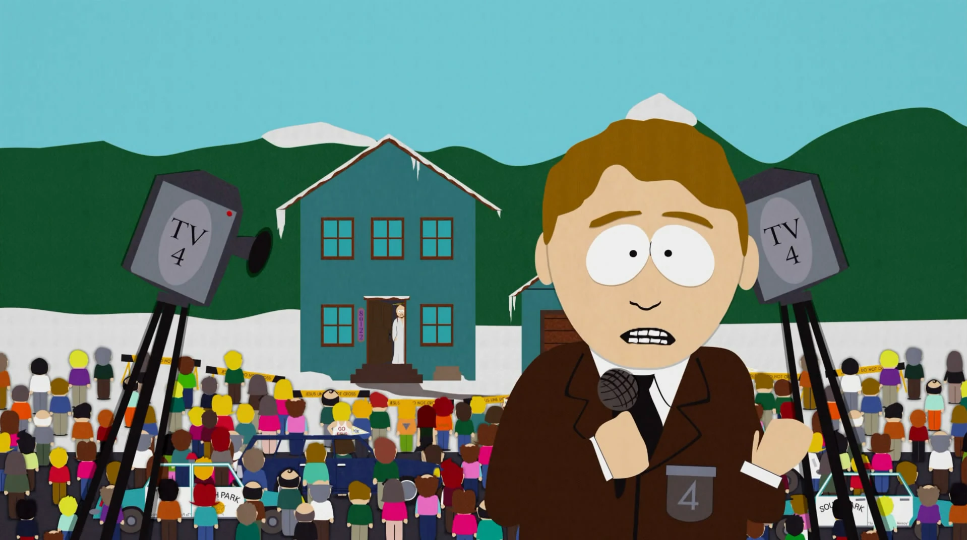 肯尼在家中的卫生间里发现自己的肛门也开始流血了,于是他认为他也来了月经。但是接下来镜头切到了一个关于在城镇中结肠感染流行的新闻报导,但是显然男孩们并没有看到这则新闻,所以还是蒙在鼓里。