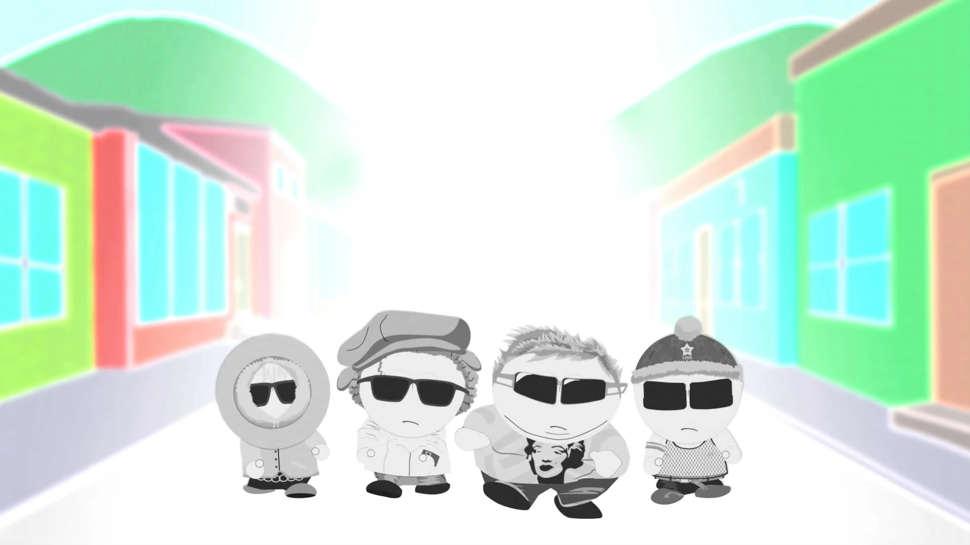 在公交站,卡特曼、肯尼和斯坦讨论着斯坦弄脏他新睡衣的事情,他们的嗓音都有些娘气。他们三个都穿着让他们显得有些基的衣服——比如说,斯坦穿着渔网式的背心,肯尼有了一件新的粉紫色大衣。随后凯尔来到公交站,穿着他平时的衣服,戴着那顶毛帽。卡特曼开始笑话他,说他的衣服过时了。他们三个决定给他打扮一番,结果让他也看着很基。