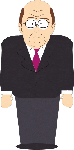 卡尔·罗夫身材宽大,有着秃顶的棕发,戴着一副眼睛。他穿着黑色西装、白衬衣、灰裤子,打着紫色领带。