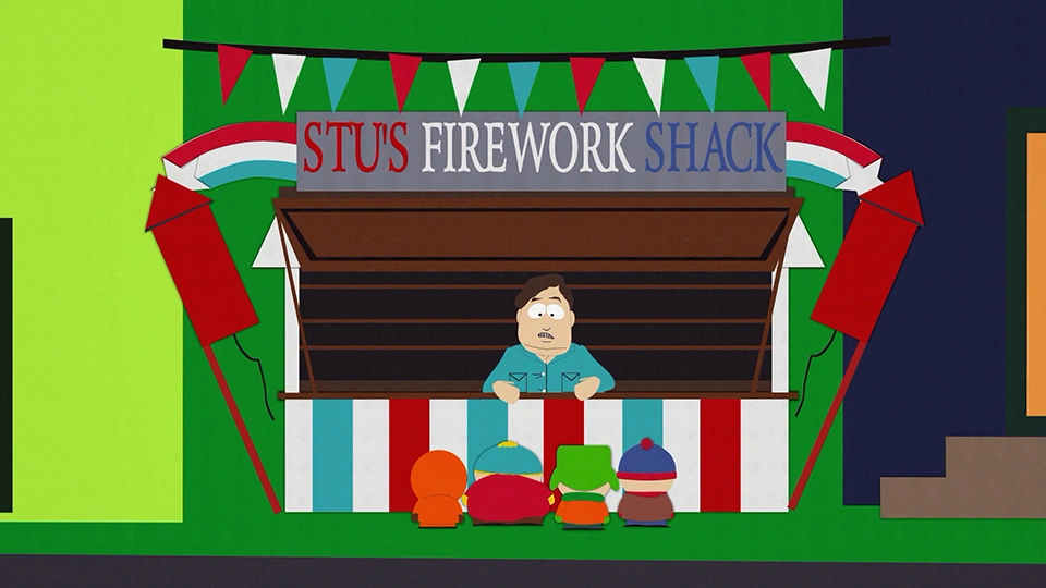 夏天到了,暑假开始,四人组到斯图烟花摊为国庆日购买烟花。但店主斯图告诉他们科罗拉多州已经禁止了所有烟花的销售,因为一个来自北方公园的孩子手被烟花炸掉了。唯一没有被禁止的烟花是黑蛇,但是男孩们并不打算去买,因为他们觉得黑蛇非常差劲。