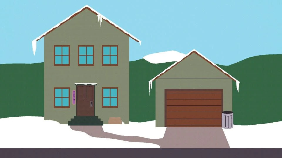 - “城里人来也” - 出现在南方公园房地产集团所制作的广告中。在这剧集中,该住宅外墙的绿色变深了许多。