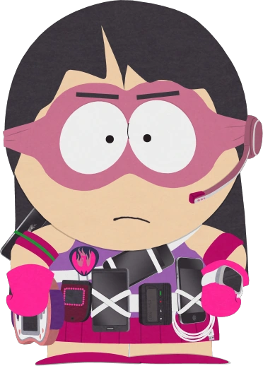 在南方公园:完整破碎中电话女侠在将新来的孩子从复仇的葡萄干女孩的埋伏中解救出来时,首先显露了自己。电话女侠警告新来的孩子,他们的行为已经引起了一些坏人的注意,尽管她向新来的孩子保证,如果他需要她的帮助,他可以去找她。如果新来的孩子不是一个男的或其他性别的人,电话女侠会透露,自从他们搬到城里后,她就知道她不是男孩,但出于对新来的孩子“神秘”愿望的尊重,她承诺会保守秘密。