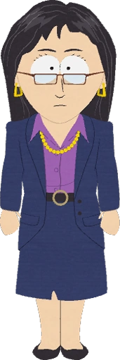 在《南方公园:后新冠时代》的未来时间线,未来的她穿着深蓝色外套和裙子,紫色的领袖衬衫,戴着一副眼镜、一对金色耳环和一条金色项链。