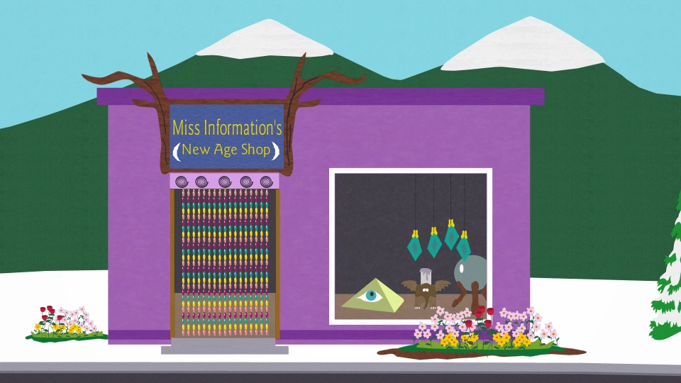 贾消息女士的新时代商店是一家精神商店,卖一些占卜相关的物品。在第四季剧集“病危的凯尔”中出场。